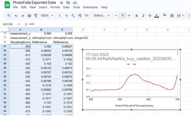 Explore historical sample data, reflectance spectra, chromaticity values and other quantities of interest & export to Google Sheets for further analysis